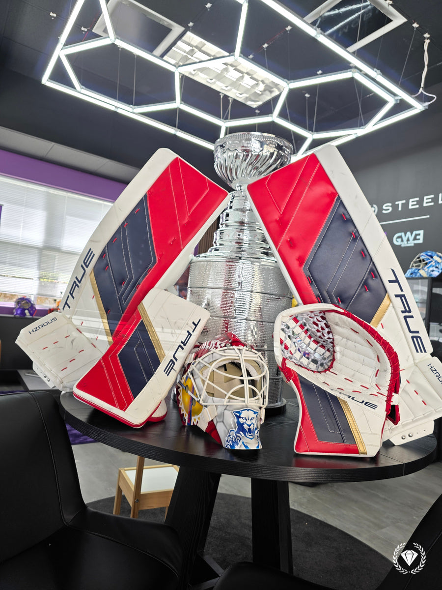 Goalie game worn equipment, such as gloves and pads, carry the weight of countless saves and the energy of countless celebrations.
