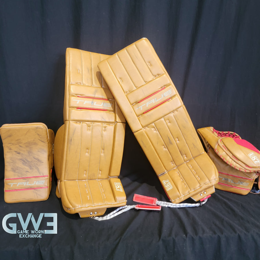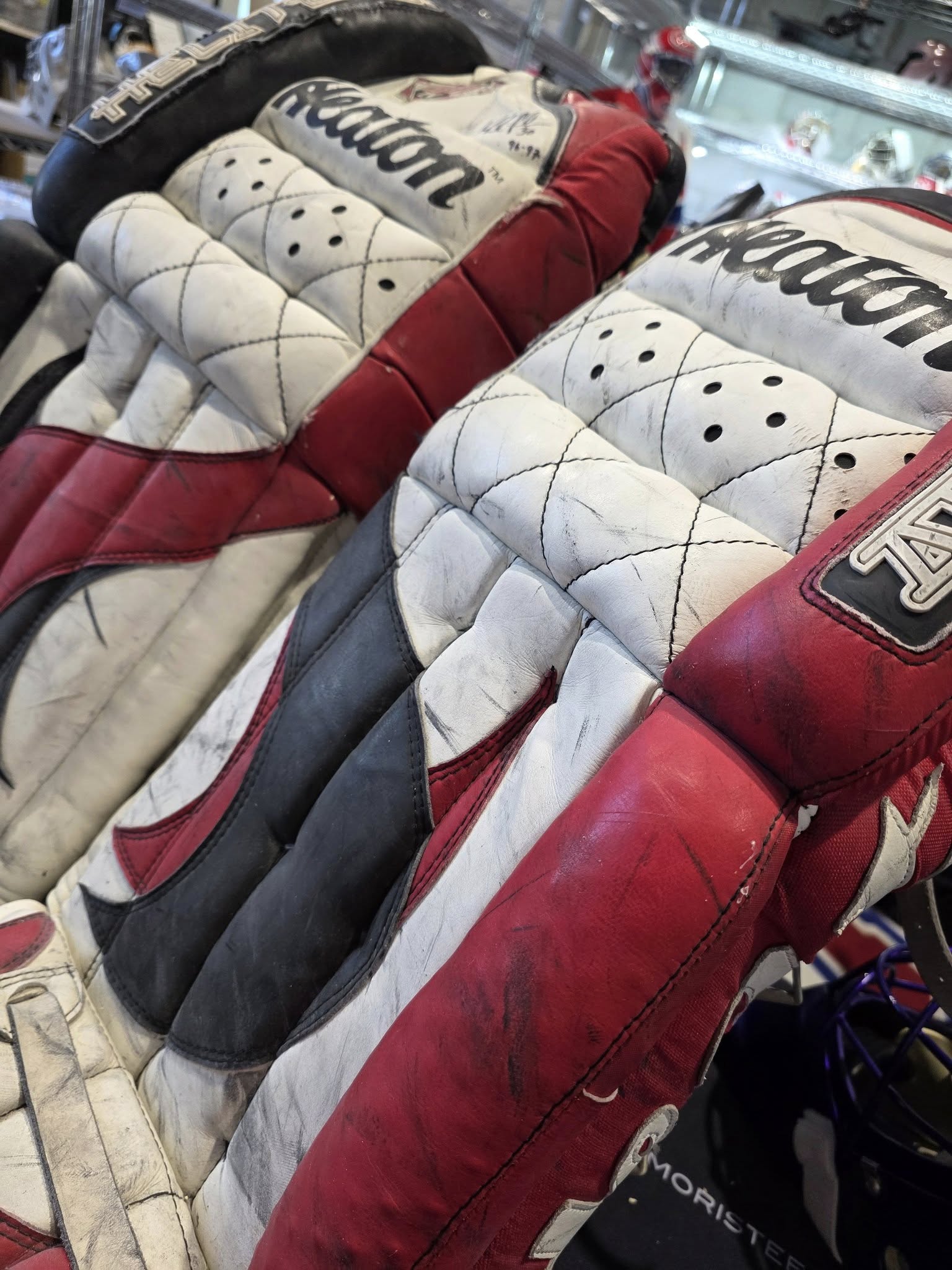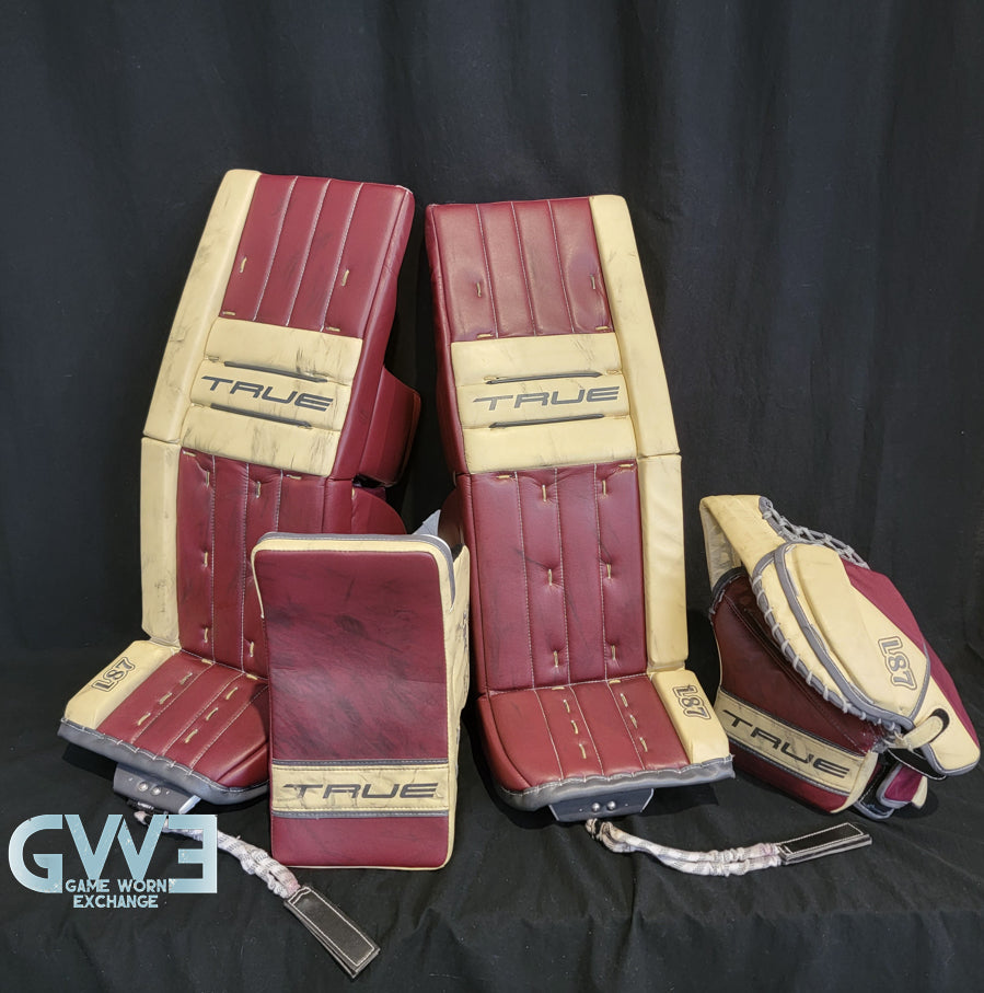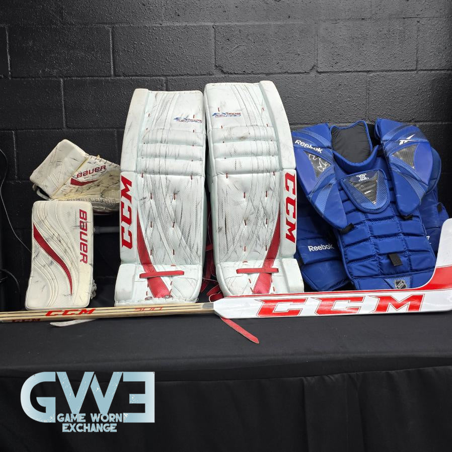 Goalie game worn equipment, such as gloves and pads, carry the weight of countless saves and the energy of countless celebrations.