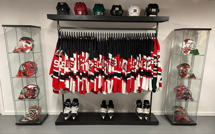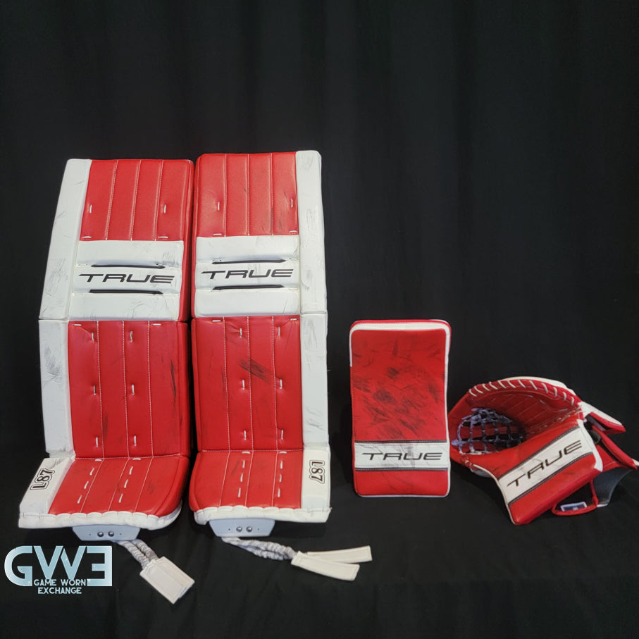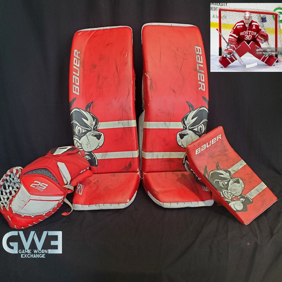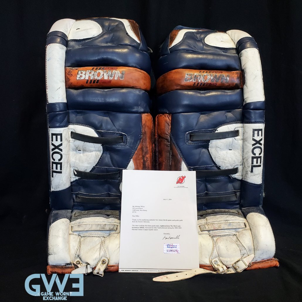 Goalie game worn equipment, such as gloves and pads, carry the weight of countless saves and the energy of countless celebrations.
