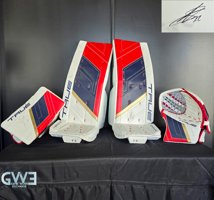 The pads feature the classic Florida Panthers colorway of white, red, navy, and gold, with bold TRUE branding along the outer rolls and the HRZDUS designation embroidered on the gloves. Constructed using Lefevre’s renowned pro-level build quality, the PX4 platform is designed for powerful rebounds, a rigid face structure, and elite sealing along the ice — characteristics that perfectly complement Bobrovsky’s athletic and aggressive playing style.
